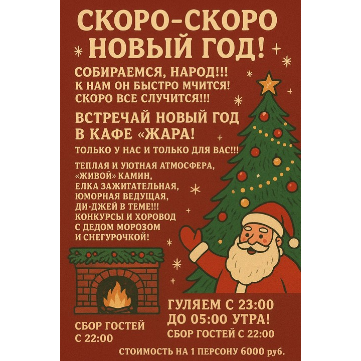 Уютное кафе «Жара» — это отличное место для любого случая, будь это деловая встреча, дружеские посиделки, романтическое свидание или семейный праздник.